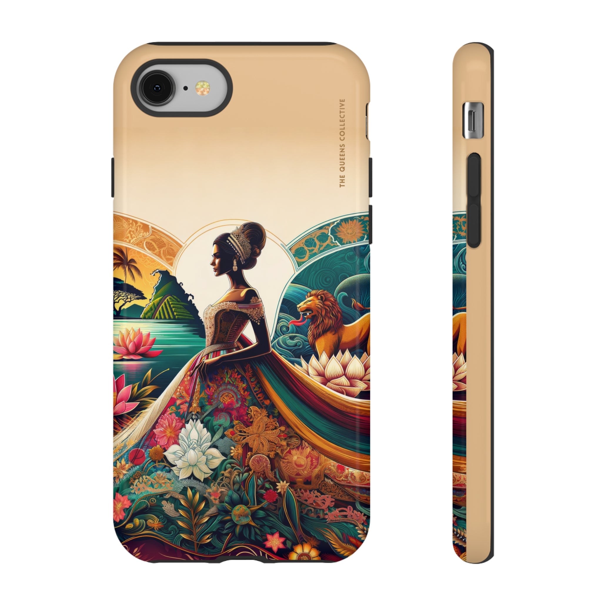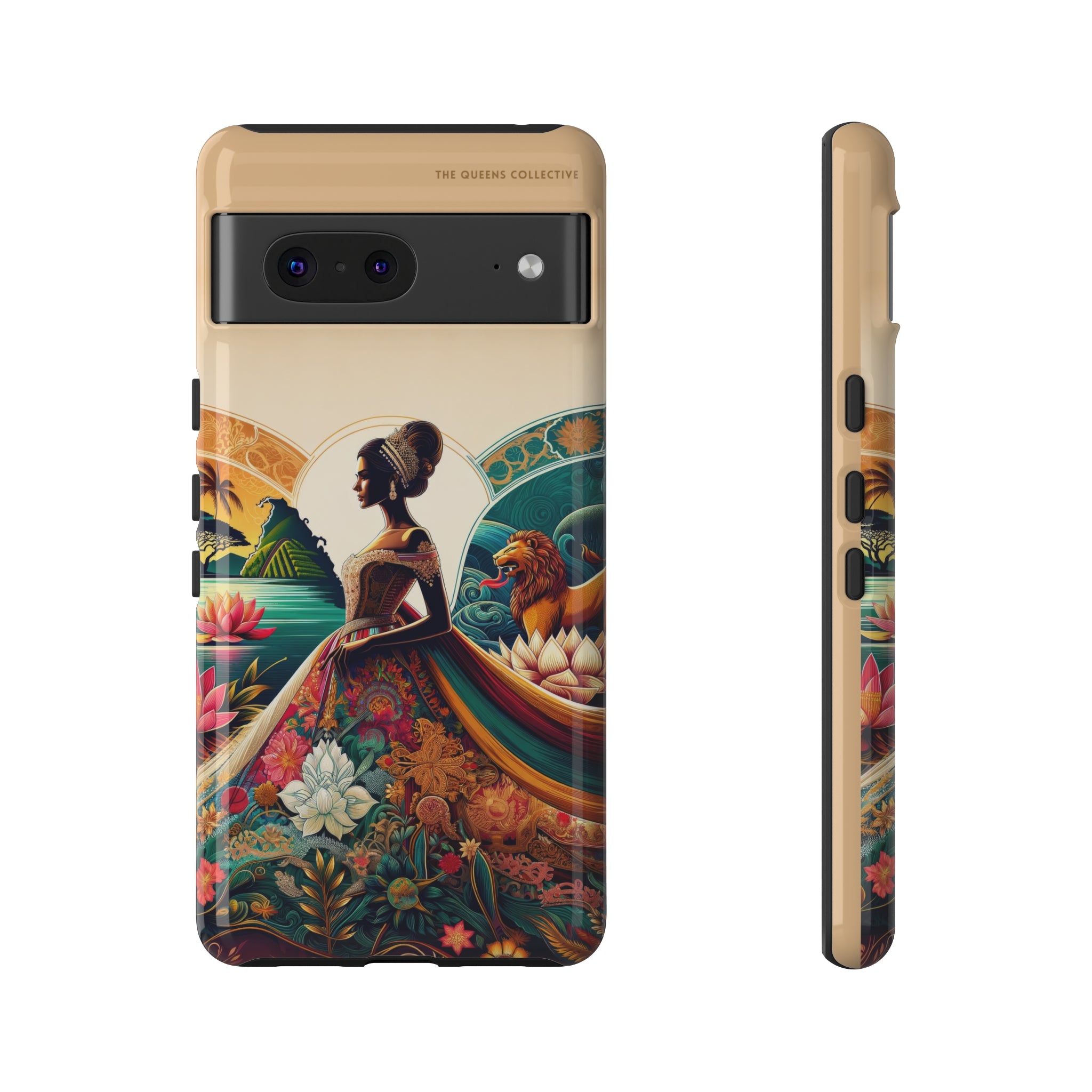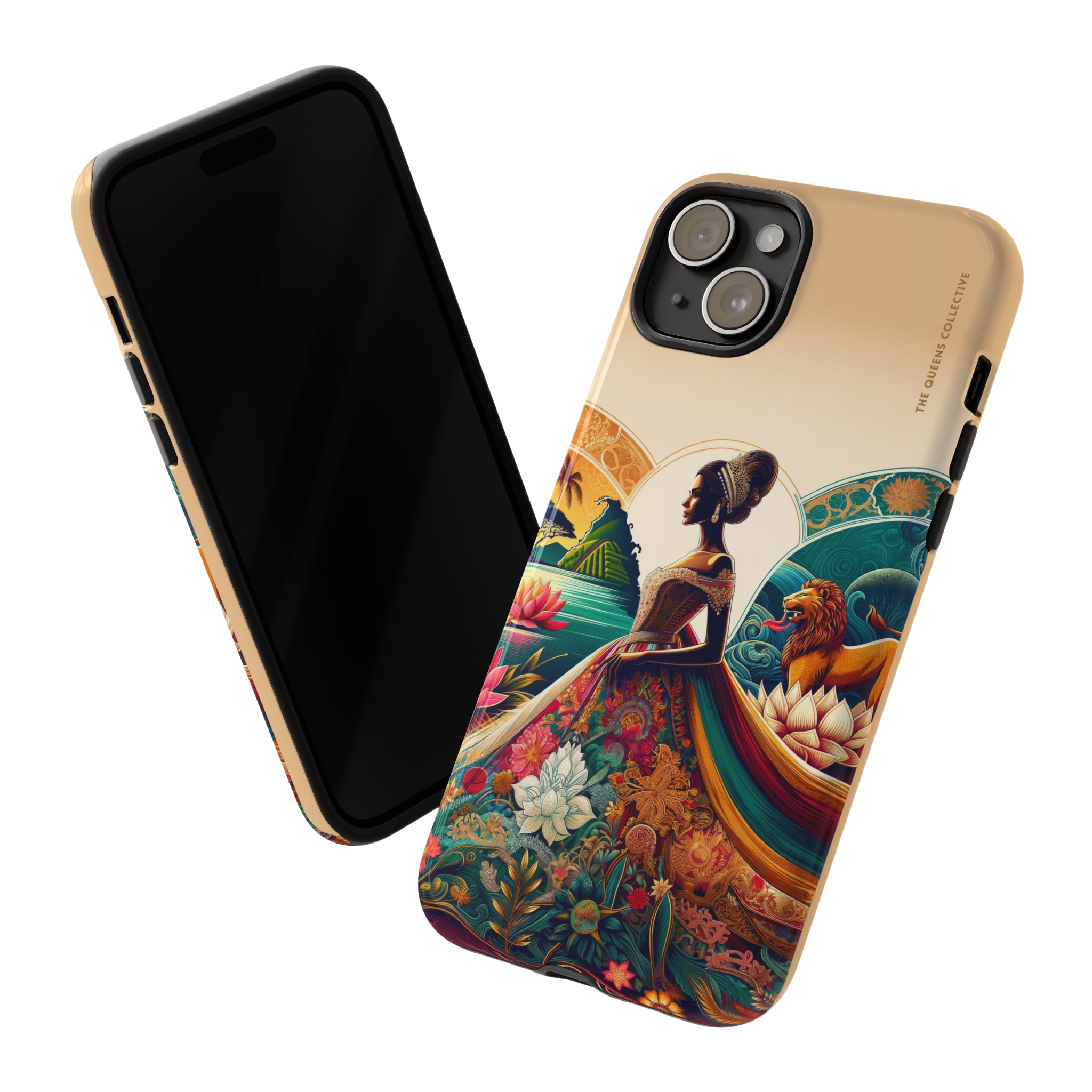 This premium-quality custom protective phone case, compatible with Apple iPhone, Samsung Galaxy, and Google Pixel devices, boasts a robust construction with double layers for enhanced durability and protection. Its design features an original Queens Collection motif with a glossy finish. The case's outer layer is made of 100% polycarbonate to resist daily impacts, while the inner lining is crafted from 100% TPU, ensuring your device remains secure. It supports wireless charging (excluding MagSafe) and is designed with clear, open ports for seamless connectivity, making it both functional and stylish.